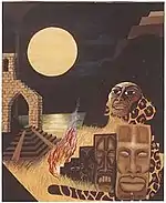 Monjett Graham moved to San Francisco, California in October 1969, from Omaha, Nebraska. In the early 1970s he wrote a regular column on culture for the Sun Reporter, an African American newspaper, located in San Francisco.[1] He also contributed artwork to The Rip Off Review of Western Culture magazine/comic; two pieces were published in the first issue. The first drawing was entitled "Urban Mood" created with a single woodcut and pencil. The second drawing was created with woodcuts only, three soldiers, entitled "Occupation". The subject matter, at that time was social commentary and surrealistic landscapes. In 1970 Monjett Graham had his first one man exhibition, "The Fire Cycle" at the San Francisco College for Women. The college had changed its name in 1971 to the Lone Mountain College[2] Monjett Graham became an exhibiting member of the Blackman's Art Gallery on Haight Street in San Francisco, which was the first African American owned art gallery in Northern California.