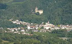 Finds from the pre-Christian area show that early settlements in the Montan area date back to that period. Results from linguistics research in the field of place and field names support this assumption. Local names of pre-Roman (Gomaroa, Tschalfai) and Romanesque (Kalditsch, Montan, Glen, Pinzon) origin suggest a lively settlement activity in the centuries BC and AD.[4] Around 955, Bavarian settlers began colonising the area. This colonisation culminated in the 12th century and ended in the mid-13th century. In 1133, the possession of the Weyarn monastery was registered at Enn court, as was the Sonnenburg monastery in Kalditsch in 1181. The lords of Enn appeared in Montan in the mid-12th century.