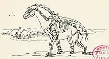 Moropus (meaning "slow foot") is an extinct genus of large perissodactyl ("odd-toed" ungulate) mammal in the chalicothere family. They were endemic to North America during the Miocene from ~20.4–13.6 Mya, existing for approximately 6.8 million years. Moropus belonged to the schizotheriine subfamily of chalicotheres, and has the best fossil record of any member of this group; numbers of individuals, including complete skeletons, have been found.
