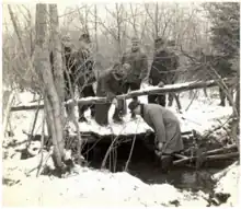 Initially, it was suspected that Martin's disappearance was linked to a sex slavery ring.[1] However, her body was discovered in the forested wilderness of Northmoreland Township, Wyoming County, on December 21, 1938, about 25 miles (40 km) from her home.[3][6][8] The discoverer was 19-year-old Anthony Rezykowski, who was trapping muskrats in the area.[2][3] Rezykowski noticed a large burlap bag partially submerged in 2 feet (0.61 m) of water in a creek.[5] Upon further investigation, he found the bag to contain the mutilated body of a young woman with no clothing. The body was soon identified as Margaret Martin.[2] At the time of her body's discovery, she had been dead for at least 24 hours. If not for Rezykowski's discovery of her body, it may have gone unnoticed for several years.[5]