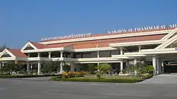 From left to right, top to bottom : Nakhon Si Thammarat City Wall, Wat Phra Mahathat, Nakhon Si Thammarat PAO Stadium, Nakhon Si Thammarat Airport, Nakhon Si Thammarat railway station | |