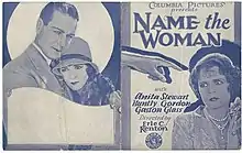 Name the Woman is a lost[1] 1928 American silent drama film directed by Erle C. Kenton and starring Anita Stewart, Huntley Gordon and Gaston Glass.[2] The film's sets were designed by the art director Joseph C. Wright. The studios's 1934 sound film of the same title is not a remake.
