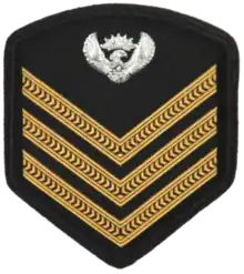 ![]() SANDF - INSIGNIA - Rank - NCO - SA Army - Embossed - Gold On Black - Pin On - Sergeant - NCG and MD |