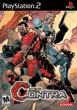 Neo Contra (ネオコントラ, Neo Kontora) is the tenth video game in the Contra series published by Konami. It was developed by Team Neo Kijirushi, a group of staff members within Konami Computer Entertainment Tokyo, and released for the PlayStation 2 in 2004. The game is a direct follow-up to Contra: Shattered Soldier, but returns to the multidirectional shooting format and departs from the traditional scrolling shooter formula used in previous games. It was the first game in the series to receive an M (Mature) rating from the ESRB and was the only installment to receive this rating until the release of Rogue Corps in 2019.