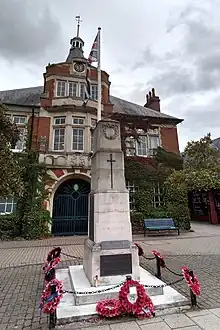 New Malden War Memorial is a Grade II listed war memorial in the town of New Malden, Royal Borough of Kingston upon Thames, Greater London, England, commemorating local victims of the First and Second World Wars.[1] Situated in the High Street of New Malden, in front of the erstwhile New Malden Town Hall now owned by Waitrose, New Malden War Memorial comprises a three-tiered cenotaph on a pedestal and two-stepped base.[2]