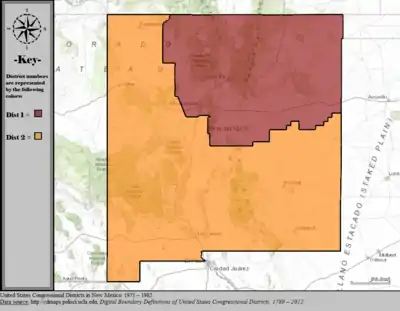 Table of United States congressional district boundary maps in the State of New Mexico is presented chronologically.[15] All redistricting events that took place in New Mexico between 1973 and 2013 are shown.