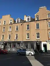 The Buildings of Scotland guide to Edinburgh summarises Newington's development as "attracting villas and terraces and then subjecting them to the pressures of commerce and traffic".[94] Newington is a predominantly residential suburb.[95] South Clerk Street and Newington Road form the main shopping street with specialised shops on Causewayside.[96] There is also a small row of shops on Salisbury Place and on Minto Street near the corner with West Mayfield.[97] There are many guest houses on Minto Street.[98] Institutional buildings include the Summerhall arts centre and Historic Environment Scotland's Longmore House.[96]