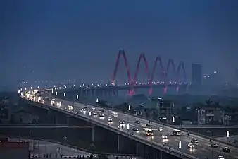 The Nhật Tân Bridge (or Vietnam–Japan Friendship Bridge) is a cable-stayed bridge crossing the Red River in Hanoi, inaugurated on 4 January 2015.[1] It forms part of a new six-lane highway linking Hanoi and Noi Bai International Airport. The project is funded by a Japan International Cooperation Agency ODA loan.[2]