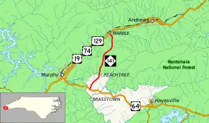 North Carolina Highway 141 (NC 141) is a primary state highway in the U.S. state of North Carolina. It serves to connect the Peachtree community, located in the Valley River Mountains, with Marble and Murphy.