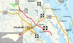 North Carolina Highway 343 (NC 343) is a primary state highway in the U.S. state of North Carolina. It serves to connect the county seat of Camden with both the north and south ends of Camden County.