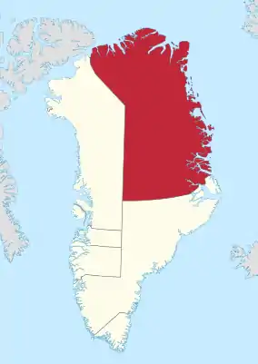 Northeast Greenland National Park (Greenlandic: Kalaallit Nunaanni nuna eqqissisimatitaq, Danish: Grønlands Nationalpark) is the world's largest national park and the 10th largest protected area (the only larger protected areas consist mostly of sea).[1] Established in 1974 and expanded to its present size in 1988, it protects 972,000 km2 (375,000 sq mi)[2] of the interior and northeastern coast of Greenland and is bigger than all except 29 of the world's 195 countries. It was the first national park to be created in the Kingdom of Denmark and remains Greenland's only national park. It is the northernmost national park in the world and the second-largest by area of any second-level subdivision of any country in the world, trailing only the Qikiqtaaluk Region in Nunavut, Canada.