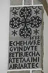 Stone decoration in Armendarits, "This house was made by Betiri Echarte and Aimia Iriarte"