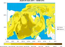 Calculated cesium-137 concentration in the air, 24 March 2011