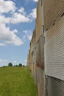Today, "Point Alpha" is the name of a museum on the road between Geisa (Thuringia) and Rasdorf village (Hesse). The former OP now houses an exhibition on the presence of U.S. forces which includes several military vehicles. The museum complex covers not only the NATO observation post on the Hessian side, but also a strip of the (largely reconstructed) border protection systems of East Germany, including a visitors' center on the Thuringian side (Haus auf der Grenze, built 2002/2003), which features an exhibit on the inner German border.[4] In 2011, the memorial was awarded the European Heritage Label.[5]