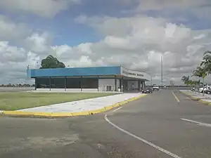 San Tomé and surrounds are served by San Tomé Airport, formally Don Edmundo Barrios Airport,[9] located just west of the camp. The airport connects the towns of El Tigre, El Tigrito, and San Tomé to the rest of the country. The San Tomé-Puerto la Cruz highway connects the town with Puerto la Cruz on the coast.[10] The largest city to the south is Ciudad Bolivar on the Orinoco River.