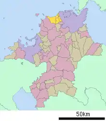 - Orio(折尾町)- Merged to Yahata City in 1944, currently Yahata Nishi-ku, Kitakyūshū