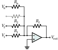 A summing amplifier sums several (weighted) voltages: