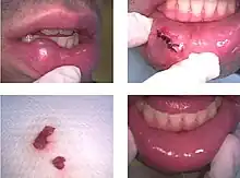 - ↑ Sinha R, Sarkar S, Khaitan T, Kabiraj A, Maji A (2016). "Nonsurgical Management of Oral Mucocele by Intralesional Corticosteroid Therapy". International Journal of Dentistry. 2016: 2896748. doi:10.1155/2016/2896748. PMC 5086369. PMID 27822227.