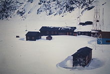 Mean monthly temperatures range from −9.4 °C (15.1 °F) in June to 1.0 °C (33.8 °F) in February.[7] In summer, the average high is 2.7 °C (36.9 °F) while the average low is −1.1 °C (30.0 °F).[7] During winter, the average high is −4.9 °C (23.2 °F) while the average low is −13.0 °C (8.6 °F).[7] Temperatures can occasionally rise above freezing during winter.[7] When low pressure systems pass to the south of the base, they can result in exceptionally mild temperatures, with the highest temperature recorded being 15.2 °C (59.4 °F) in 1987.[7] However, when this occurs, the weather is stormy and cloudy with reduced visibility.[7] In contrast, when low pressure systems pass to the north, it results in cold and dry conditions with good visibility, causing temperatures to fall to −44.0 °C (−47.2 °F).[7]