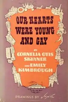 Our Hearts Were Young and Gay is a book by actress Cornelia Otis Skinner and journalist Emily Kimbrough, published in 1942. The book presents a description of their European tour in the 1920s, when they were fresh out of college from Bryn Mawr. Skinner wrote of Kimbrough, "To know Emily is to enhance one's days with gaiety, charm and occasional terror". The book was popular with readers, spending five weeks atop the New York Times Non-Fiction Best Seller list in the winter of 1943.[1]