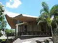 The structure of the main church is made mostly of indigenous materials such as wood, stone, bamboo, sasa or nipa leaves and sawali or woven bamboo strips. The shape of its roof resembles a salakot, a traditional Filipino hat used by farmers and fishermen in their respective agricultural activities as their protection against the heat and rain.[3] At the top of the roof stands the image of Our Lady of Mercy. The structure is open so that the pilgrims can enter and exit freely.
