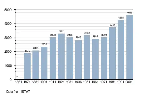 - ↑ "Popolazione Residente al 1° Gennaio 2018". Italian National Institute of Statistics. Retrieved 16 March 2019.
