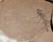 The earliest report of Crayfish from the highlands was by Wesley Wehr and Lisa Barksdale (1995). In a short Washington Geology article they reported the first identified occurrence of feathers from the Klondike Mountain Formation and crayfish from both there and the McAbee site. At that time, the moulted carapace section from Republic was not identified further than as a freshwater crayfish. The McAbee specimen was tentatively identified, from photograph, as being a possible Procambarus species fossil by malacologist Rodney M. Feldmann.[25] Subsequently an additional series of over ten fossils were recovered from McAbee and described in 2011 as Aenigmastacus crandalli by Feldmann, Carrie Schweitzer, and John Leahy. A. crandalli was placed in the southern hemisphere superfamily Parastacoidea based on several morphological characters, and they noted this species to be the only northern hemisphere member of the superfamily.[26]