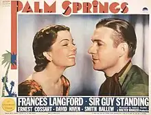 Palm Springs (alternate title: Palm Springs Affair) is a 1936 American comedy drama film directed by Aubrey Scotto and starring Frances Langford, Guy Standing and Ernest Cossart. It also features an early performance by future star David Niven. It was produced by Walter Wanger for distribution by Paramount Pictures.