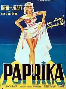 Paprika is a 1933 French comedy film directed by Jean de Limur and starring Irène Zilahy, René Lefèvre and Pierre Etchepare.[1] It was based on a play by Max Reimann and Otto Schwartz. A German-language version Paprika had been released the previous year.