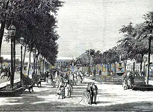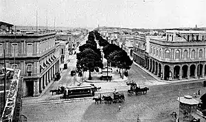 Paseo del Prado is a street and promenade in Havana, Cuba, near the location of the old city wall, and the division between Centro Habana and Old Havana. Technically, the Paseo del Prado includes the entire length of Paseo Martí approximately from the Malecon to Calle Máximo Gómez,[lower-alpha 1] the Fuente de la India fountain. The promenade has had several names; it was renamed Paseo de Martí in 1898 with the island's independence from Spain. Despite the historic references, the people of Havana simply call it "El Prado".