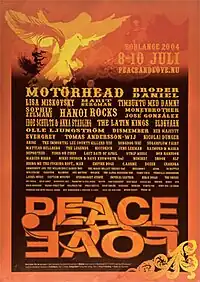 Peace & Love was the largest music festival in Sweden, known for its humanitarian message, pervasive throughout the event. It started in Borlänge and ran from 1999 until the company filed for bankruptcy in 2013.[1]