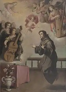 According to art historian Antonio Palomino, Pedro de Obregón was initially taught by Vincenzo Carducci, and became one of his best pupils, imitating the teacher in drawing. Palomino asserts that he painted many pictures for individuals and few to the public, although some notable works include a Holy Trinity for the convent of the Merced Calzada of Madrid, and San Joaquin and Santa Ana, commissioned by the Church of Santa Cruz, also of Madrid. These pieces were lost, but one noted was the Apparition of the Infant Jesus to San Antonio dated 1633, in the convent of Santa Clara in Villacastín.