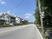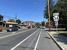 The section of current PA 34 between Mount Holly Springs and Carlisle was chartered as part of a private turnpike known as the Hanover and Carlisle Turnpike in 1812, connecting Hanover with Carlisle.[6] This turnpike provided an improved trade link between the Cumberland Valley and Baltimore.[7] When Pennsylvania first legislated routes in 1911, what is now PA 34 was designated as Legislative Route 41 between Gettysburg and Carlisle, Legislative Route 40 between Carlisle and New Bloomfield, and as part of Legislative Route 31 between New Bloomfield and Newport.[8] PA 34 was designated in 1928 to run from US 15 (now US 15 Bus.) in Gettysburg north to US 11 in Carlisle along a paved road. The same year, the road between US 11 in Carlisle and PA 5 (now PA 274) Mecks Corner was designated as PA 33 while the road between Mecks Corner and US 22 (Juniata Parkway) east of Newport was designated as part of PA 5; the entire length of the road between Carlisle and Newport was paved.[9] By 1930, Red Hill Road/Hunters Valley Road between Newport and US 11 south of Liverpool was an unnumbered unpaved road.[10] In 1937, PA 34 was extended north from Carlisle to US 22 east of Newport, replacing the PA 33 designation between Carlisle and Mecks Corner and the PA 5 designation between Mecks Corner and Newport. In addition, Red Hill Road was paved between Newport and Bucks Valley Road.[11] By 1941, Hunters Valley Road was paved between Cherry Road and US 11/US 15.[12] The remainder of Red Hill Road/Hunters Valley Road was paved by 1960.[13] In 1963, PA 34 was extended south from Gettysburg to US 15 near Fairplay, following the former alignment of US 15 after that route was moved to a bypass of Gettysburg.[14] By 1966, the south end of the route reverted to its current location at US 15 Bus., with US 15 Bus. replacing the route to the south of Gettysburg.[15] PA 34 was extended north from Newport to US 11/US 15 south of Liverpool in 1970.[16]
