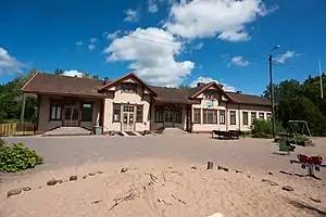 The station building, designed by Bruno Granholm and representative of Jugendstil, was completed in 1898 and received an extension in 1905.[1]