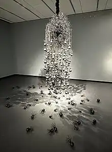 Petah Coyne (born 1953) is a contemporary American sculptor and photographer best known for her large and small scale hanging sculptures and floor installations.[2] Working in innovative and disparate materials, her media has ranged from the organic to the ephemeral, from incorporating dead fish, mud, sticks, hay, hair, black sand, specially-formulated and patented wax, satin ribbons, silk flowers, to more recently, velvet, taxidermy, and cast wax statuary.[2][3] Coyne's sculptures and photographs have been the subject of more than 30 solo museum exhibitions.[4]