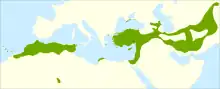 It is native to a section of Eurasia from North Africa to the Iranian Plateau, where it was once common.[11] Because other trees were rare, it was the only good source of wood and was overharvested, reducing its current distribution.[11] It is a common tree in mountain forests in Iran,[11] and it is "characteristic" of the landscape in parts of Algeria outside the Sahara.[15]