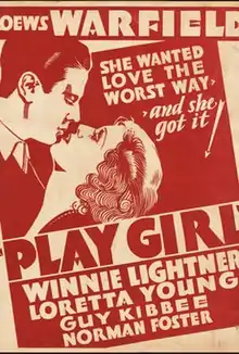 Play Girl is a 1932 American pre-Code romantic drama film starring Winnie Lightner, Loretta Young, and Norman Foster. The screenplay concerns a young woman who marries a professional gambler.[1]