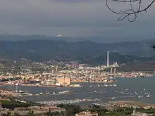 Port of La Spezia (Italian: Porto della Spezia) is a port in La Spezia, Liguria, Italy. The port of La Spezia is one of the largest commercial ports in the Ligurian Sea, and is located in the northernmost part of the Gulf of La Spezia. Its development dates from the late nineteenth century and has since grown to become one of the main ports of the Mediterranean Sea, specializing in container handling in particular. Inside a bay of 1500 hectares protected by a breakwater of about 2.2 kilometres (1.4 mi), the port of La Spezia has 5.1 kilometres (3.2 mi) of quays and at least 400,000 square kilometres (150,000 sq mi) of space.[1] In 2014, 15,700,000 tonnes and 483,564 passengers passed through the port.