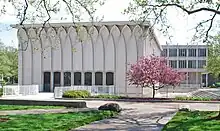 The Prentis Building and DeRoy Auditorium Complex consists of two educational buildings, the Meyer and Anna Prentis Building and the Helen L. DeRoy Auditorium, located respectively at 5201 and 5203 Cass Avenue in Midtown Detroit, Michigan, on the campus of Wayne State University. The buildings were built at the same time, and were designed by architect Minoru Yamasaki to interrelate functionally, spatially, and architecturally.[2] The buildings were constructed at a critical point in Yamasaki's career when he was experimenting with ornamentation, light and shadow, and the use of pools and gardens to soften perception of standard International Style architecture.[2] The complex was listed on the National Register of Historic Places in 2011.[1]