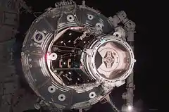 PMA-3 was brought to the ISS by STS-92 in October 2000, mounted on a Spacelab pallet.[19] It was initially attached to the nadir (bottom, or Earth-facing) hatch of Unity. About six weeks later, when STS-97 delivered the P6 solar array truss structure, Endeavour docked at PMA-3.[20] When STS-98 moved PMA-2 from Unity to Destiny via the Z1 truss in February 2001, Atlantis was docked at PMA-3.[14] For the remainder of the shuttle's operation, PMA-3 was not used for shuttle dockings. PMA-3 was moved in March 2001 to Unity's port hatch by the crew of STS-102 to make room for the docking of a Multi-Purpose Logistics Module (MPLM).[21]