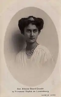 Princess Sophie Caroline Marie Wilhelmine of Luxembourg (14 February 1902 – 24 May 1941) was the sixth and youngest daughter of Grand Duke William IV and his wife, Infanta Marie Anne of Portugal.