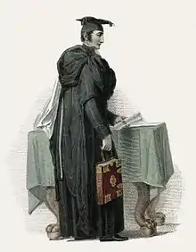 A proctor was a legal practitioner in the ecclesiastical and admiralty courts in England.[1] These courts were distinguished from the common law courts and courts of equity because they applied "civil law" derived from Roman law, instead of English common law and equity. Historically, proctors were licensed by the Archbishop of Canterbury to undertake the duties that were performed in common law courts by attorneys and in the courts of equity by solicitors.[1] Proctors were attached to the Doctors' Commons, which performed a similar function for civil law or "civilian" advocates (the doctors) to that of the Inns of Court for barristers. Reforms in the mid-19th century removed the monopoly of the civilian doctors and proctors in the family and admiralty courts, leaving only the ecclesiastical Court of Arches. Later, the Judicature Acts of 1873 and 1875, which created the Supreme Court of Judicature, combined the three roles (proctor, attorney and solicitor) into the common profession of "solicitor of the Supreme Court".