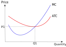 In long-run equilibrium for perfectly competitive markets, productive efficiency occurs at the base of the average total cost curve — i.e. where marginal cost equals average total cost — for each good.