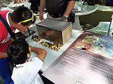 Two children look at the Sapo Concho (as it is called in Puerto Rico) at a table set up by the US Fish and Wildlife Service, in 2012.