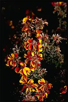 Pultenaea costata, commonly known as ribbed bush-pea,[2] is a species of flowering plant in the family Fabaceae and is endemic to the Grampians National Park in Victoria. It is a spreading shrub with egg-shaped to lance-shaped leaves, and dense clusters of pea-like flowers.