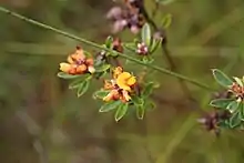 Pultenaea myrtoides is a species of flowering plant in the family Fabaceae and is endemic to eastern Australia. It is an erect shrub with egg-shaped leaves with the narrower end towards the base, pea-like flowers and flattened fruit.