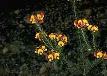 Pultenaea verruculosa is a species of flowering plant in the family Fabaceae and is endemic to the south-west of Western Australia. It is an erect shrub with flat, hairy leaves, and yellow-orange and red, pea-like flowers.