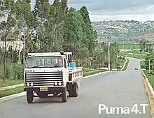 In 1971, Puma began to manufacture truck cabs for Chevrolet as a sideline. In 1978, Puma decided to launch its own truck model, called the 4T. Years later the Puma 6T model was launched, and in 1981 the Puma 2T model and buses were also made with chassis of its trucks.[3] In 1974 the Puma GTB (for Gran Turismo Brasil) was launched. Based on the chassis of the Chevrolet Opala, it had been in development since 1971. It was one of the most expensive cars in Brazil at the time, but was a great success between the year of its launch and 1987. In 1978, the Puma GTB S2 was launched, an updated GTB for the 1980s with a more modern, more powerful and larger design, that used the chassis of the Volkswagen Brasília instead of the Karmann Ghia's.[3][5]