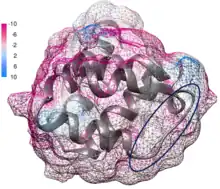 A pyrin domain (PYD, also known as PAAD/DAPIN) is a protein domain and a subclass of protein motif known as the death fold, the 4th and most recently discovered member of the death domain superfamily (DDF). It was originally discovered in the pyrin protein, or marenostrin, encoded by MEFV. The mutation of the MEFV gene is the cause of the disease known as Familial Mediterranean Fever.[4] The domain is encoded in 23 human proteins and at least 31 mouse genes.[5]