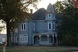 The R.E. Lee House is a historic house at 1302 West 2nd Street in Pine Bluff, Arkansas. It is a 1+1⁄2-story wood-frame structure, with asymmetrical massing and complex roof line characteristic of the Queen Anne period of architecture. The house is set on a lot with an original period wrought iron fence. A three-story corner tower with bellcast six-side roof projects from one corner, with an elaborately decorated Eastlake-style porch sheltering its entrance. Built in 1893, it is an outstanding local example of the Queen Anne style.[2]